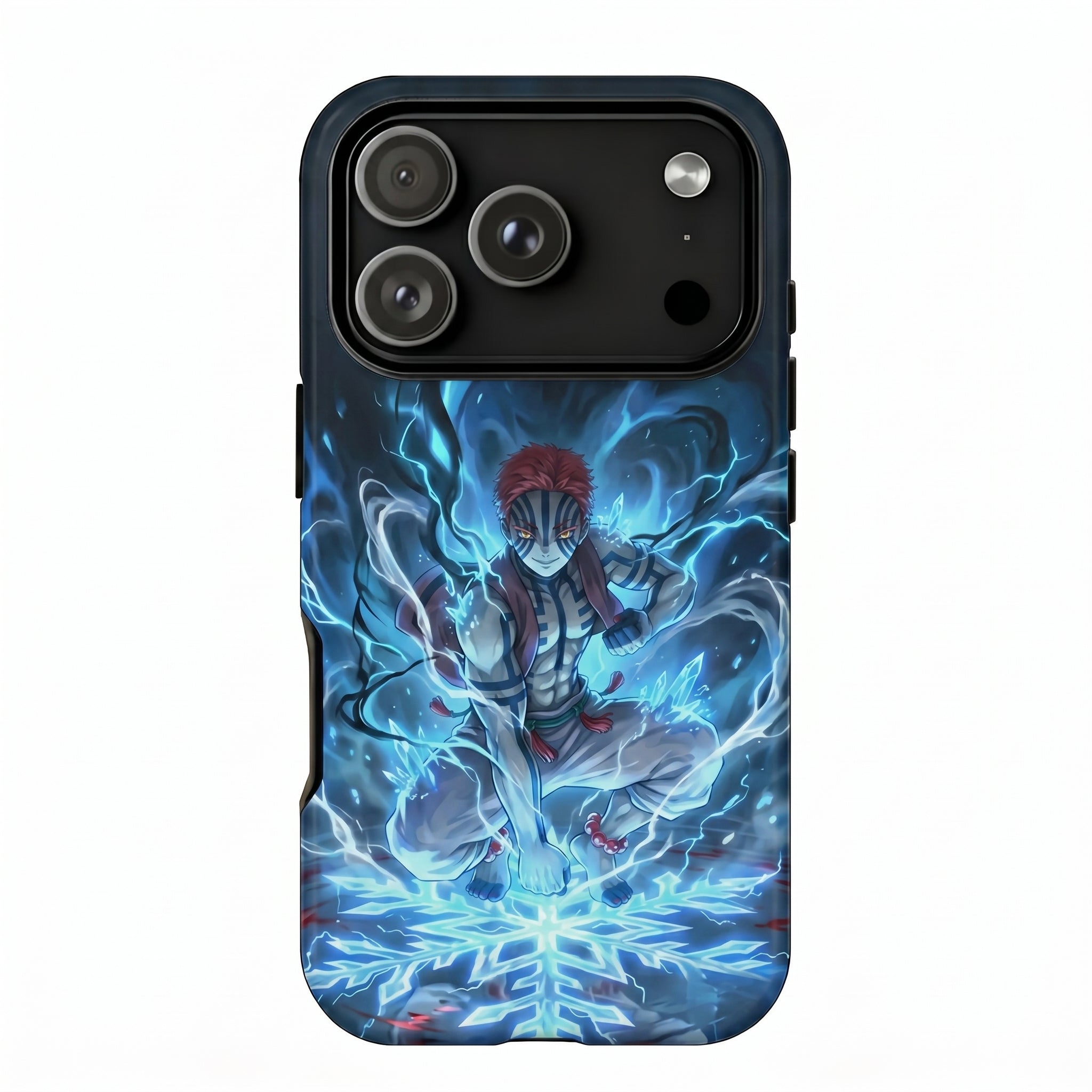 Akaza Demon Slayer Phone Case – Ice Blue Lightning Electric Snowflake Combat Design