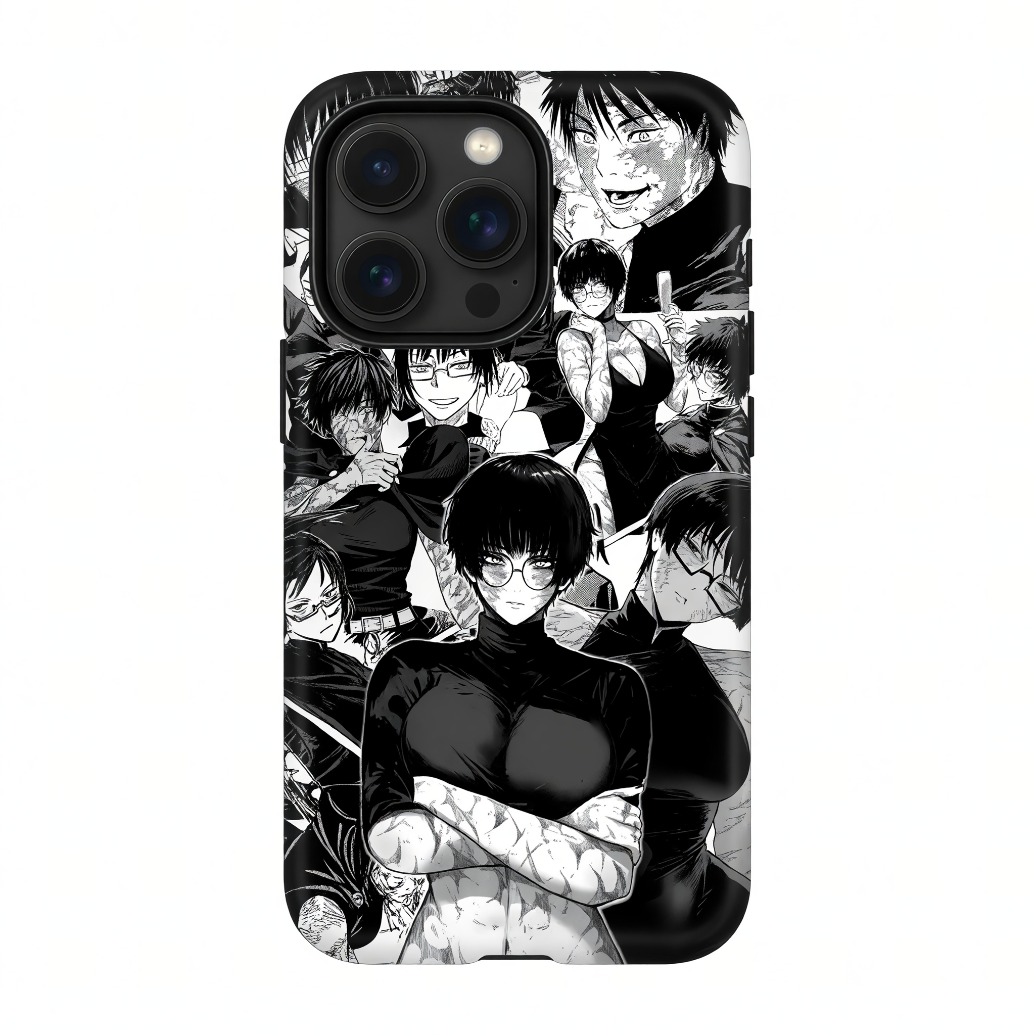 Upgrade your phone with this manga inspired phone case featuring Himeno across multiple dynamic expressions and poses showcasing her confident smirk cool glasses elegant figure casual attitude and fierce devil hunter spirit all rendered in crisp black and white manga style layered into a rich densely packed fan collage composition with bold contrasting shadows and detailed screentone shading. The striking multi pose fan collage layout, deep black and white manga tones, and undeniable charisma create a luxury dark manga style that stands out instantly. Perfect for fans who love every side of Himeno, bold dark artwork, and statement accessories.