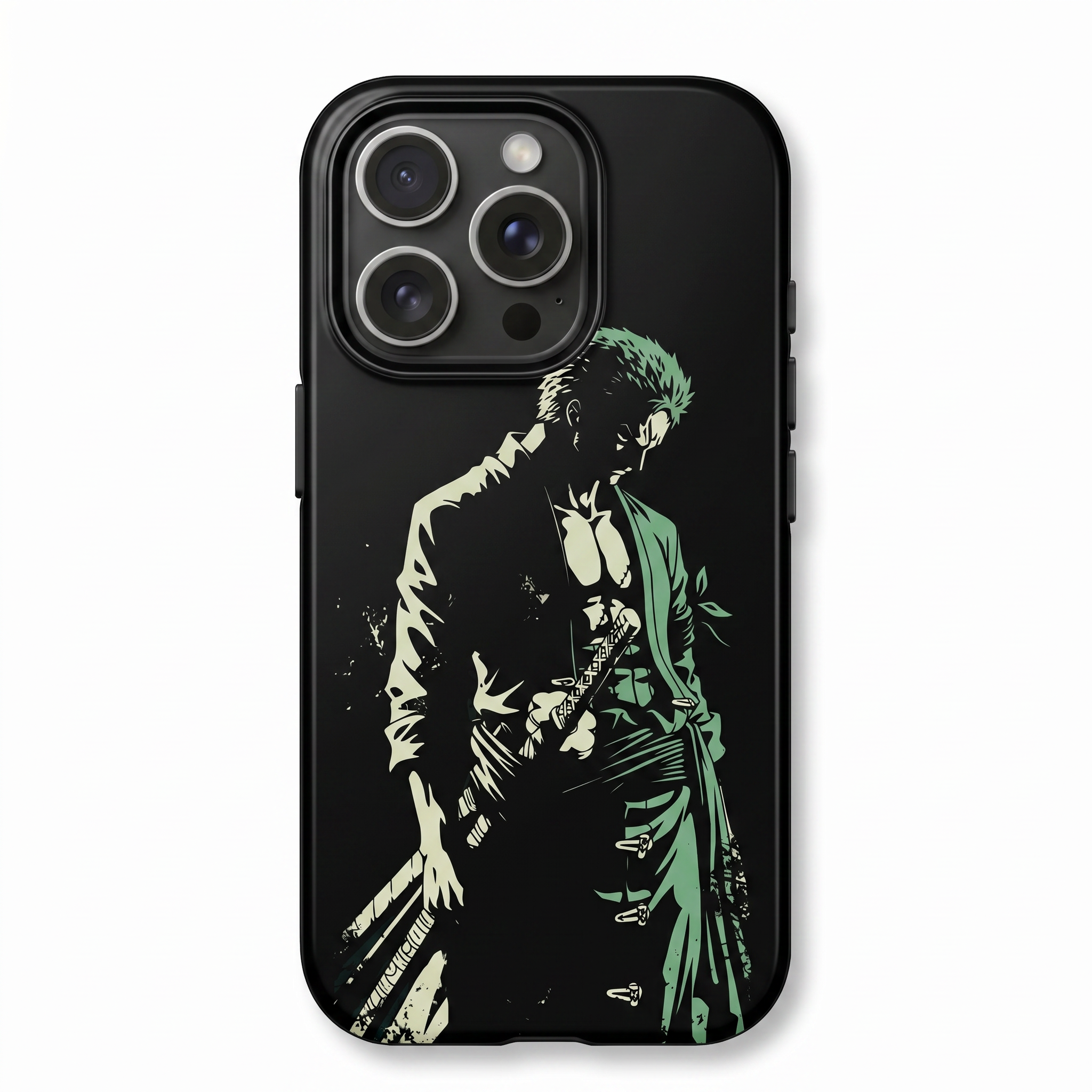 Roronoa Zoro One Piece Phone Case – Dark Silhouette Green Tones Sword Draw Pure Black Minimalist Anime Art Design